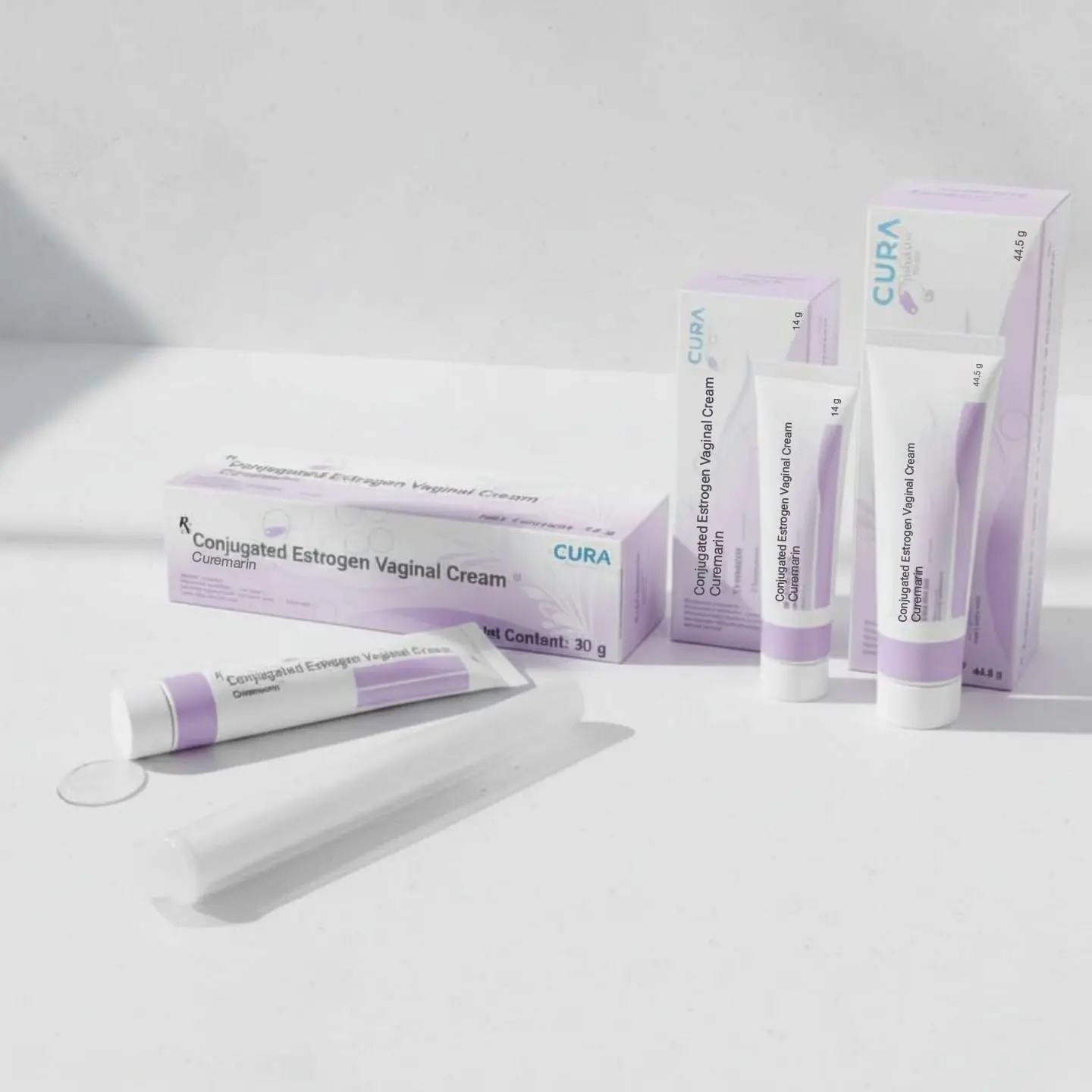 Curemarin is a conjugated estrogens vaginal cream formulated for local vaginal administration to support vaginal tissue health in estrogen-deficient conditions. It is designed to deliver conjugated estrogens directly at the site of application, helping restore vaginal physiology while minimizing systemic exposure.